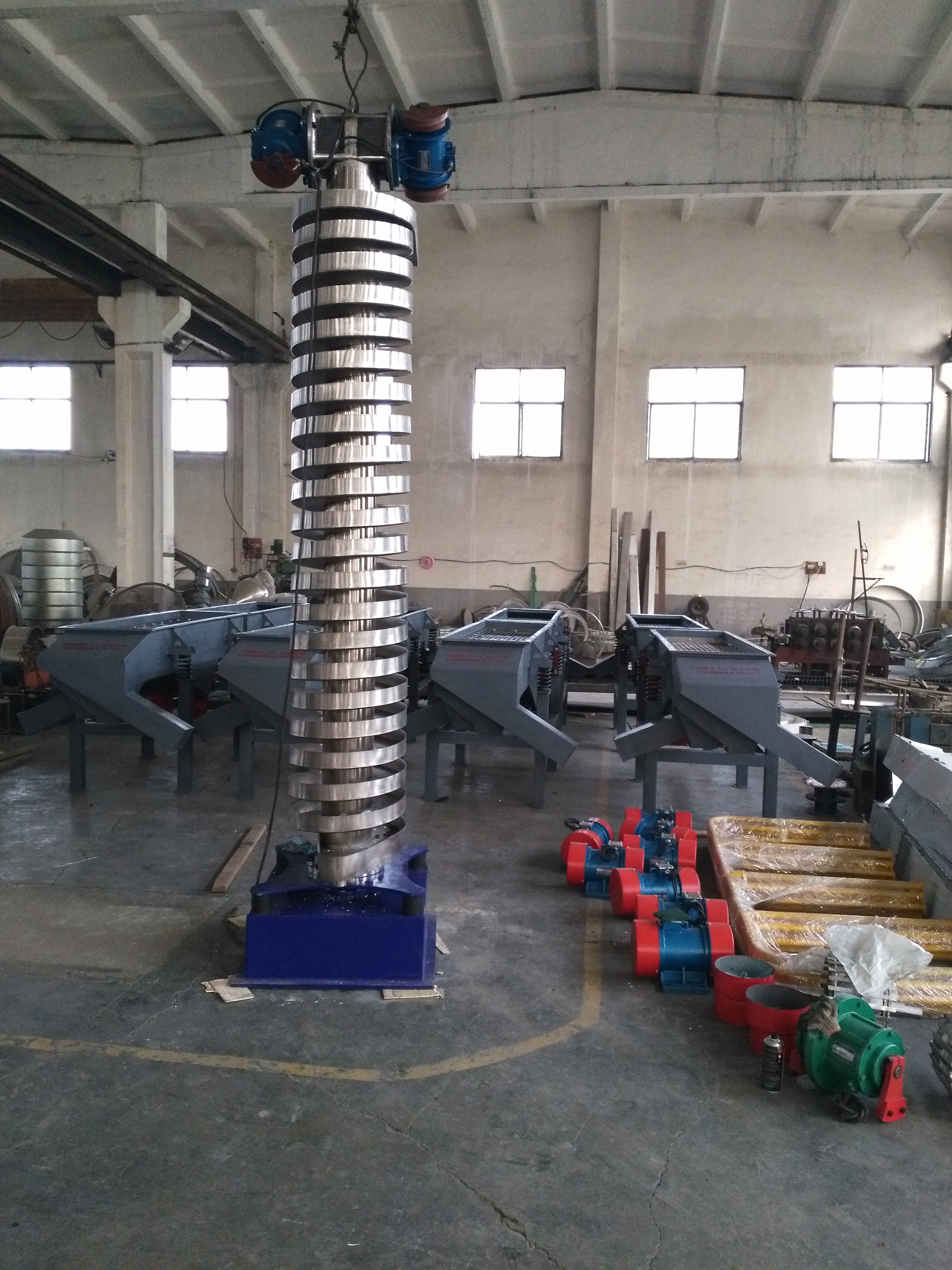 螺旋垂直提升機(jī)是一種垂直提升的設(shè)備,該設(shè)備程螺旋狀,該機(jī)工作時擱板的回程不占用工作節(jié)拍,輸送效率高,且不受輸送高速的影響。安全可靠,易于維護(hù),運(yùn)行費(fèi)用低廉,有效降低輸送成本。與出入口輸送設(shè)備配套使用,使輸送過程實(shí)現(xiàn)完全自動化,避免了人工操作帶來的不穩(wěn)定性。